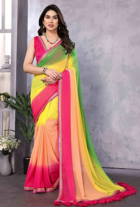 Multicolor Ombre Georgette Saree with Tassel